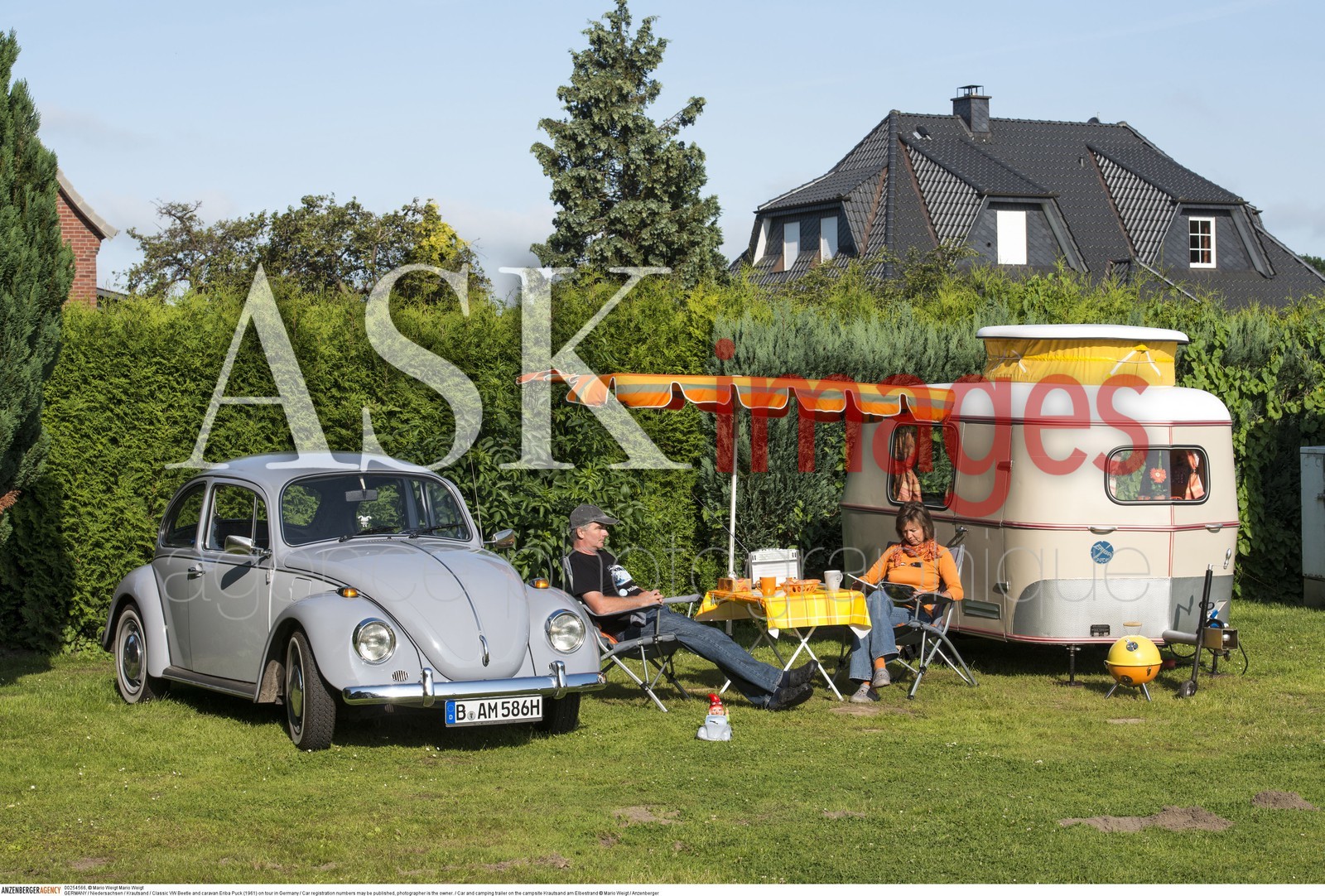 | Description | GERMANY / Niedersachsen / Krautsand / Classic VW Beetle and caravan Eriba Puck (1961) on tour in Germany / Car registration numbers may be published, photographer is the owner. / Car and camping trailer on the campsite Krautsand am Elbestrand..© Mario Weigt / Anzenberger |