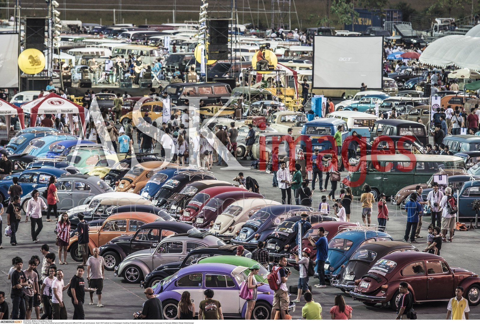 DescriptionTHAILAND / Bangkok / View of the festival ground with many and different VW cars and busses. Siam VW Festival is a Volkswagen meeting of classic cars which takes place every year in February. ..© Mario Weigt / Anzenberger