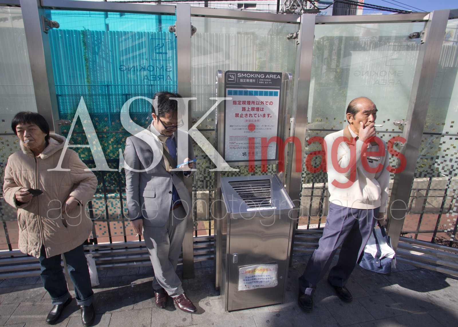 DescriptionPeople smoking in smoking area, Shinjuku, Tokyo
