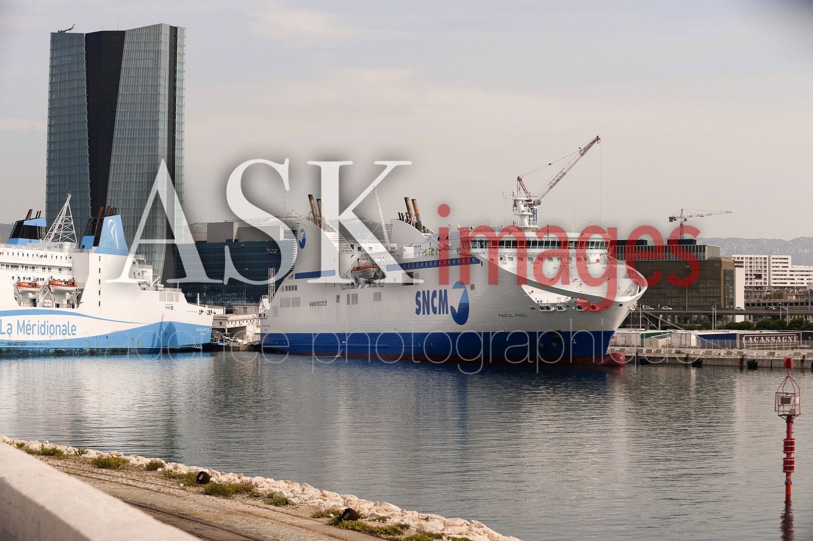 | Description | The ships of the SNCM company stationed in the Port Autonome de Marseille and CMA-CGM tower, Bouches du Rhone, France |