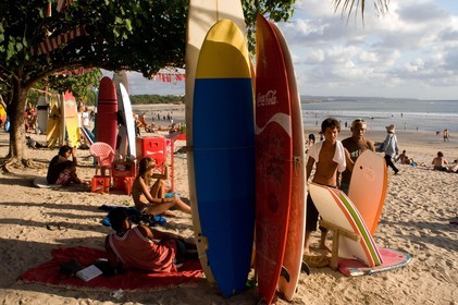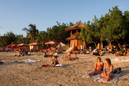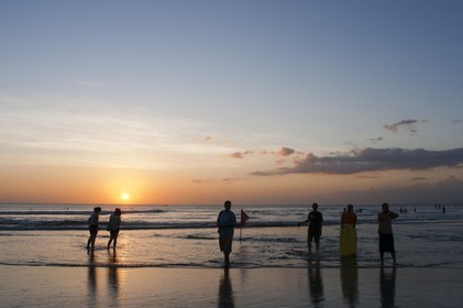 Bali. Kuta is a coastal town in the south of the island in Indonesia. Sunset over sea with tourists