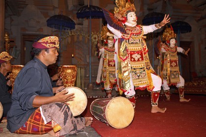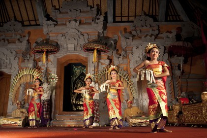 Dancers and musicians performing at Ubud, Bali Indonesia