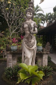 Some of the Hindu stone statues and sculptures decorating the temple Pura Desa Ubud. Ubud. Bali. The Ubud Monkey Forest is a nature reserve and temple complex in Ubud, Bali.