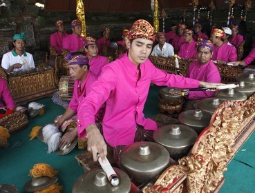 Indonesia, Bali, Mas, temple festival, gamelan musicians, odalan, Kuningan holiday,