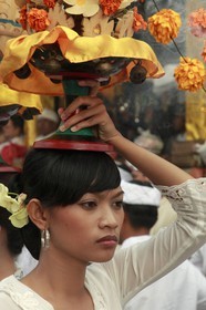 Indonesia, Bali, Mas, temple festival, people praying, odalan, Kuningan holiday,