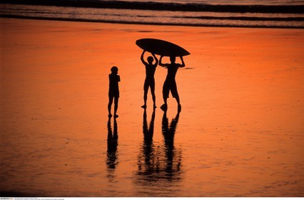 Beach of Kuta at sunset. Surfing lessons. Bali. Kuta is a coastal town in the south of the island of Lombok in Indonesia.