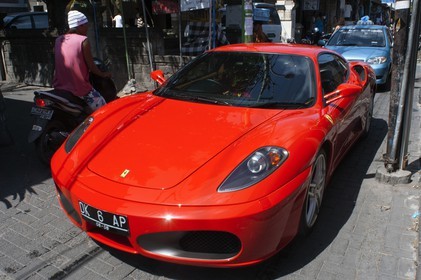 Red porsche lamborghini in the Kuta Street. Bali. Indonesia.