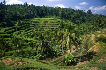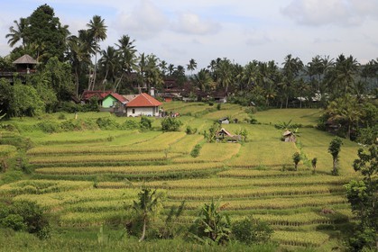 Indonesia, Bali, terraced rice fields, farmhouses,