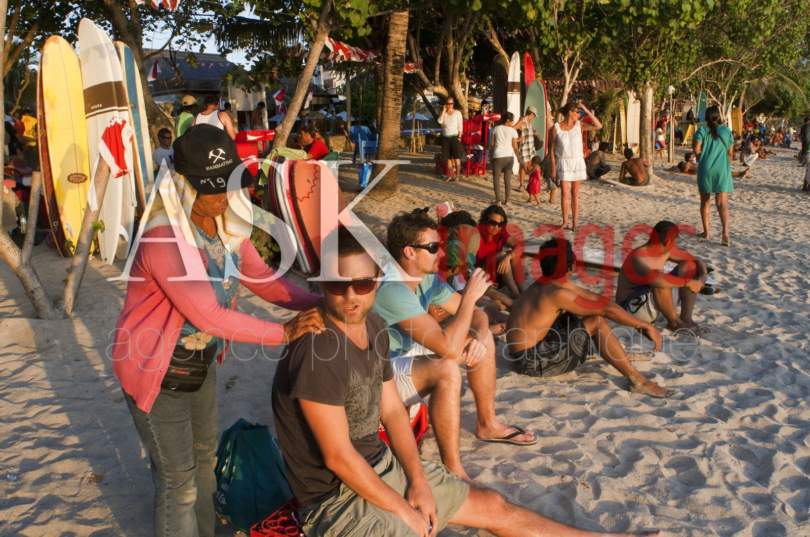 | Description | Beach of Kuta at sunset. Massages. Bali. Kuta is a coastal town in the south of the island of Lombok in Indonesia. |