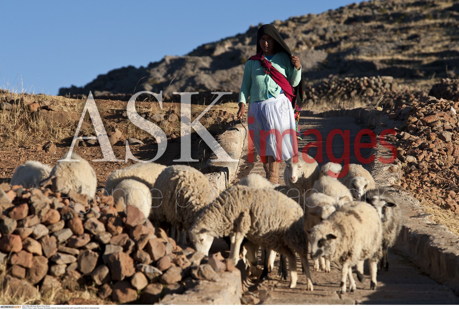 | Description | PERU / Puno / Lake Titicaca / Amantani Island / Quechua woman with sheep..© Oliver Bolch / Anzenberger |
