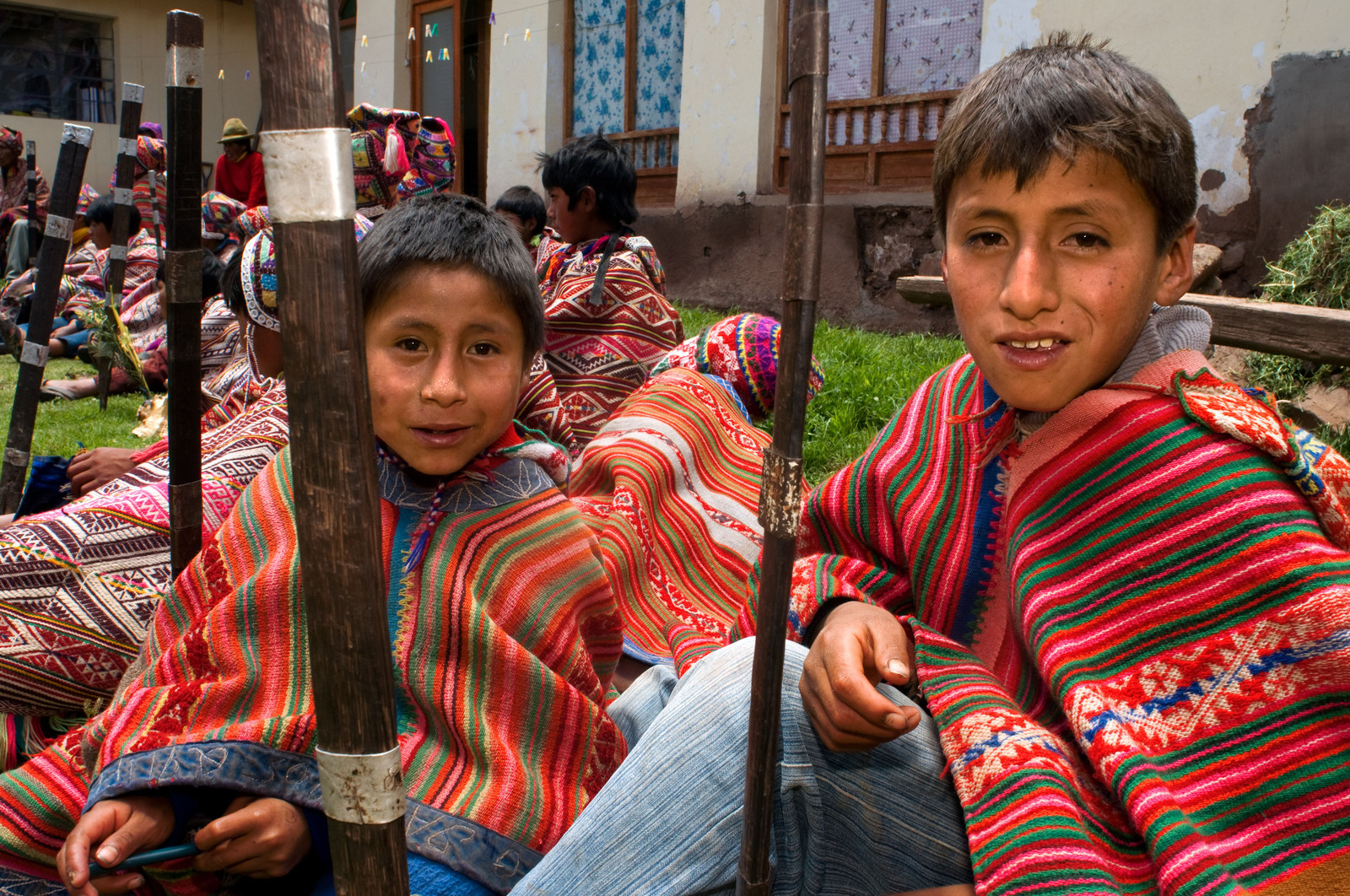 | Description | Children dressed in traditional costume in Pisac Sunday market day, Sacred Valley, Pisac, or Pisaq in Quechua, is a small town about 35 km from Cuzco. |