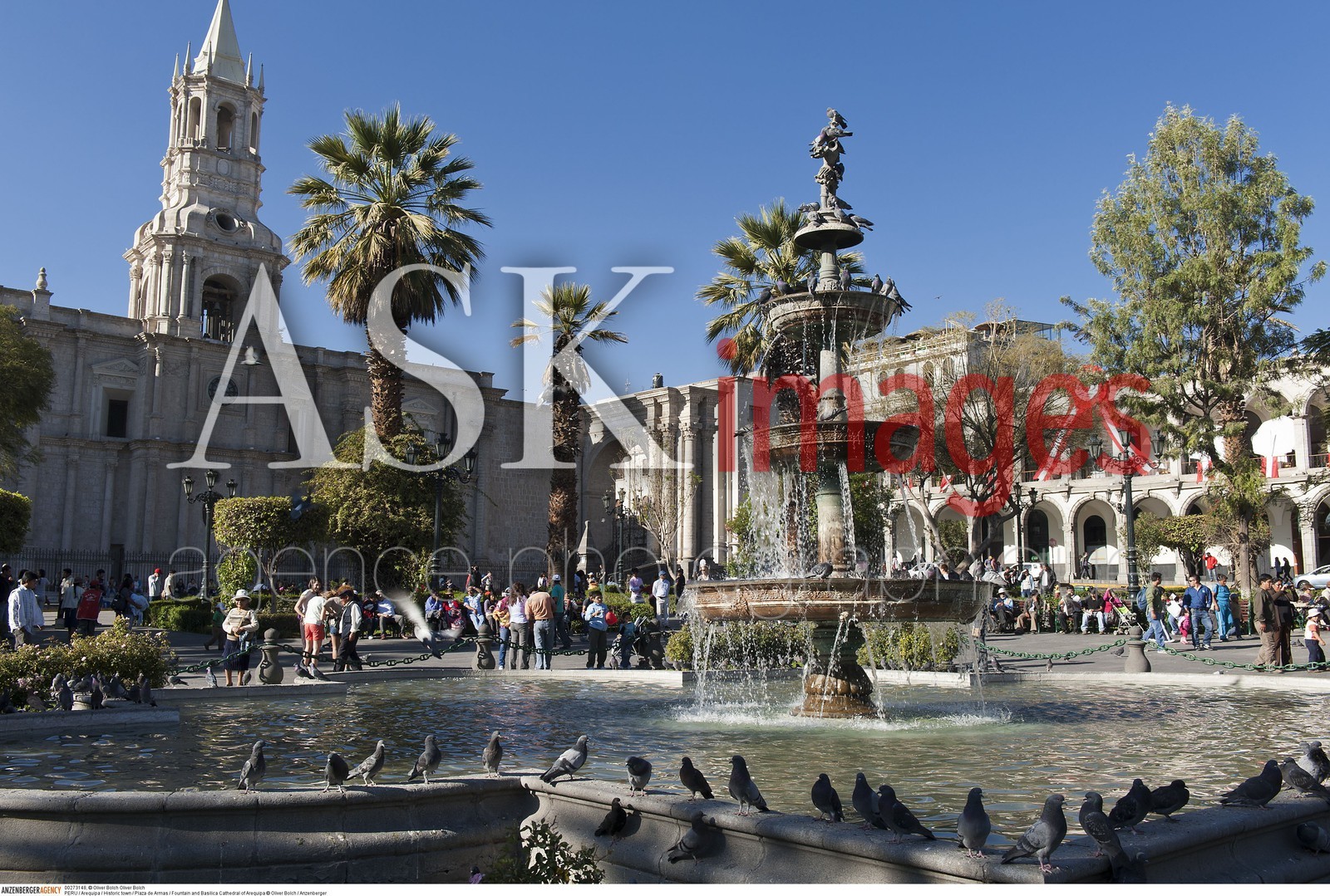 | Description | PERU / Arequipa / Historic town / Plaza de Armas / Fountain and Basilica Cathedral of Arequipa..© Oliver Bolch / Anzenberger |