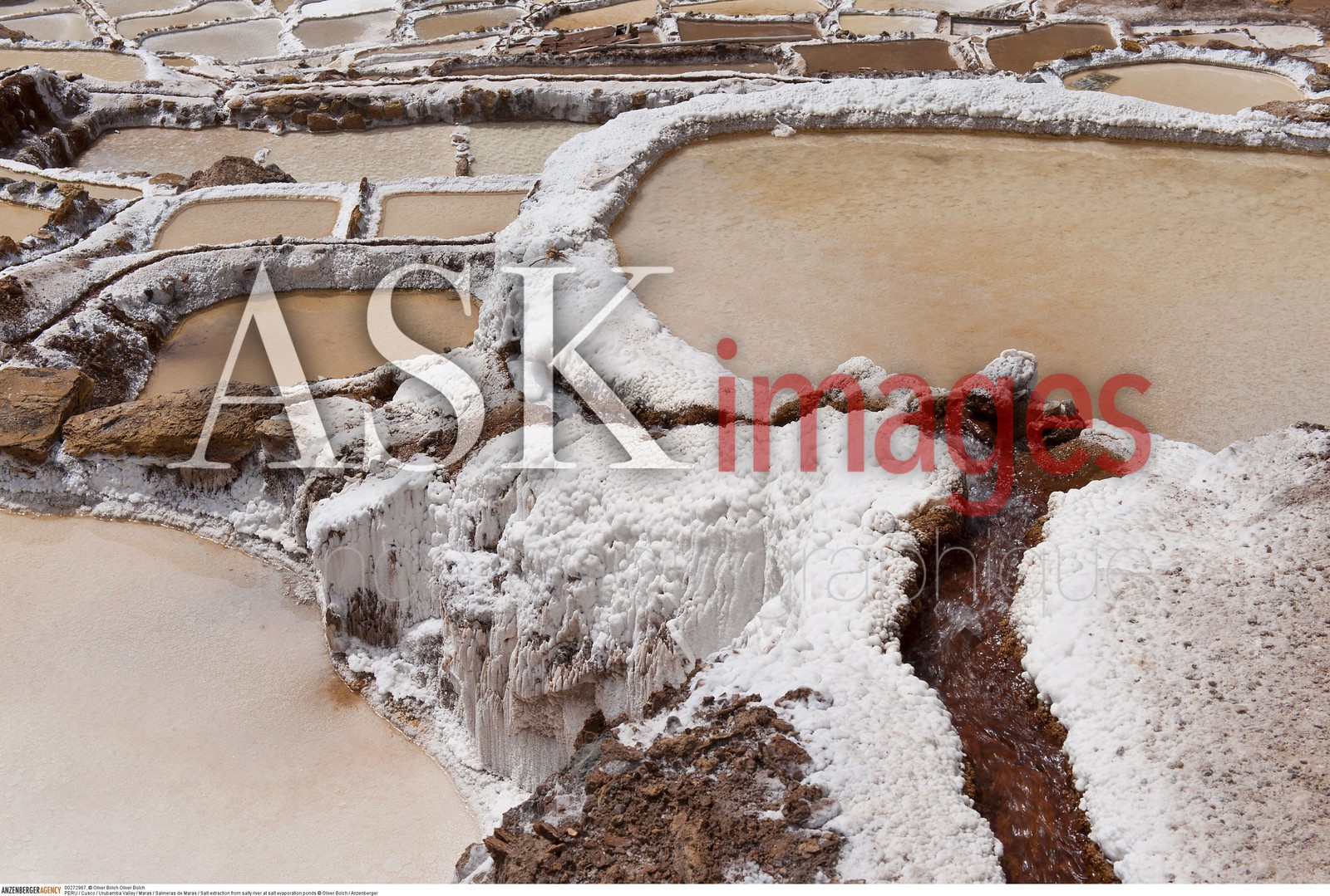 | Description | PERU / Cusco / Urubamba Valley / Maras / Salineras de Maras / Salt extraction from salty river at salt evaporation ponds..© Oliver Bolch / Anzenberger |