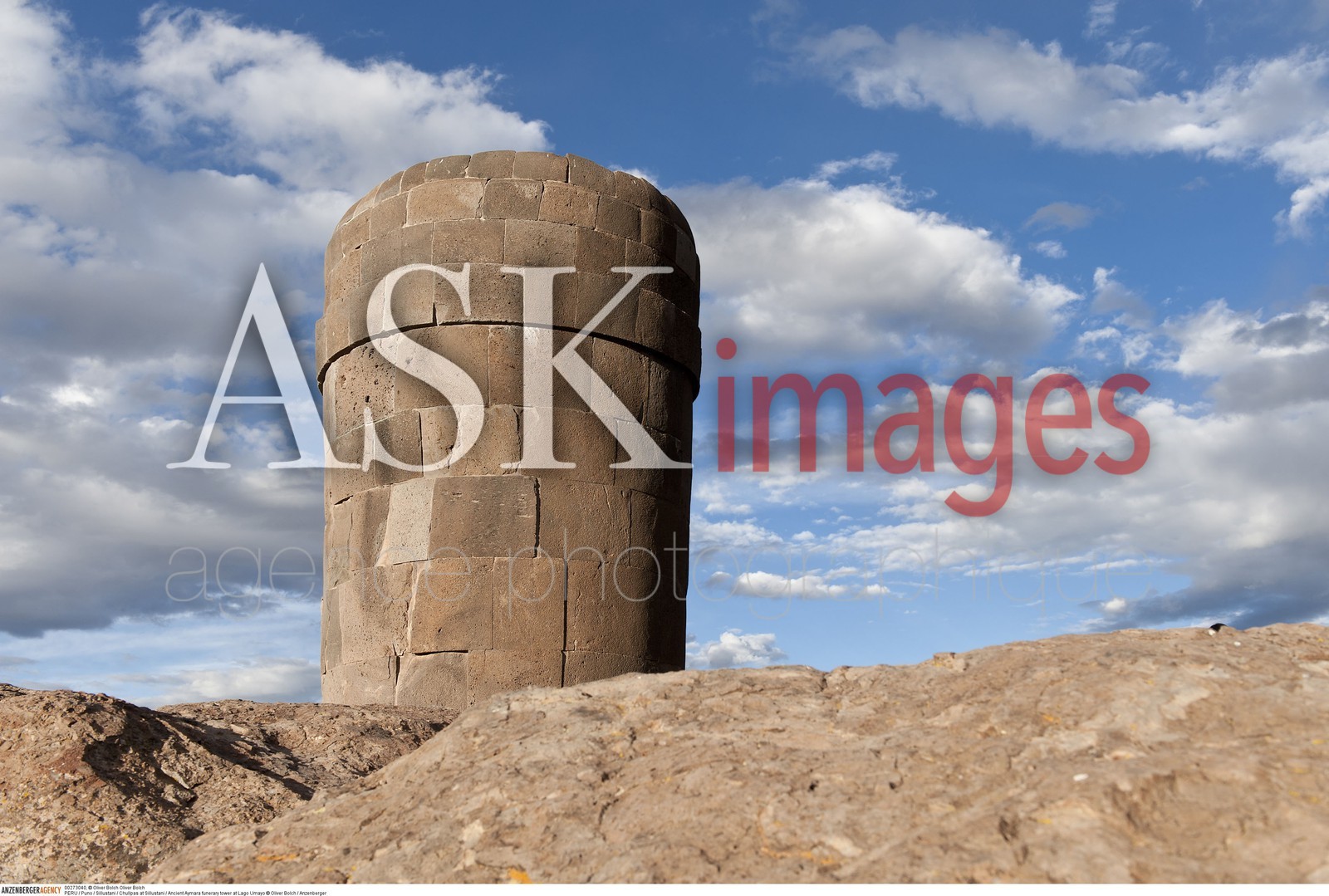 DescriptionPERU / Puno / Sillustani / Chullpas at Sillustani / Ancient Aymara funerary tower at Lago Umayo..© Oliver Bolch / Anzenberger