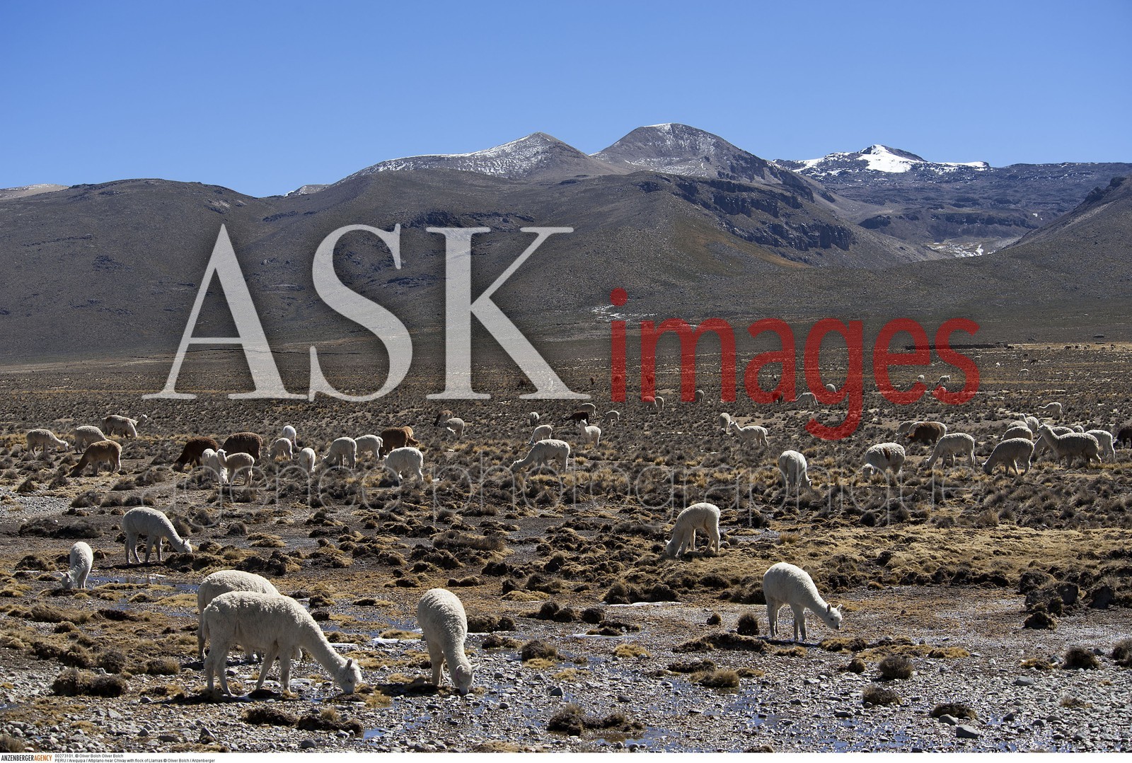 DescriptionPERU / Arequipa / Altiplano near Chivay with flock of Llamas..© Oliver Bolch / Anzenberger