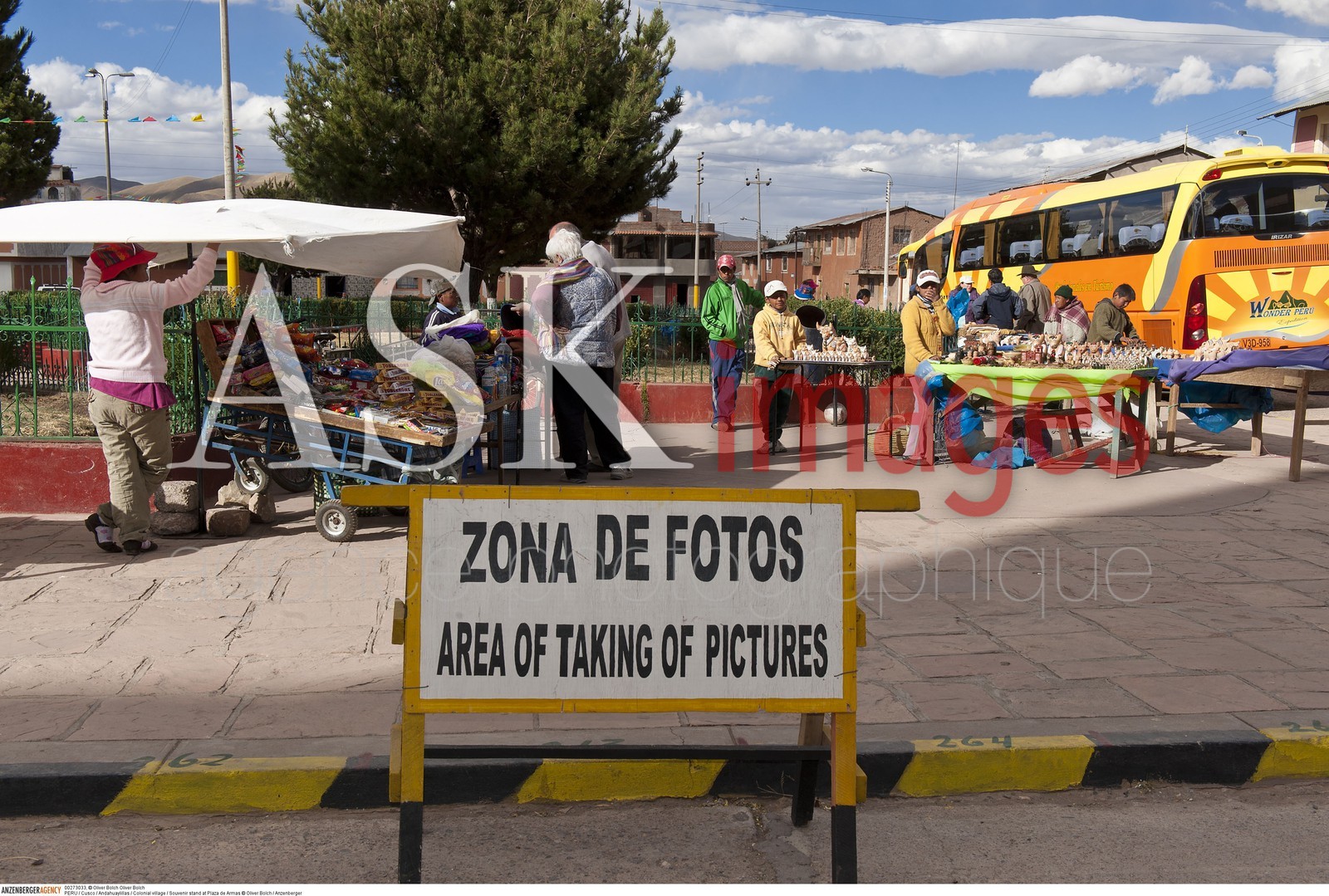 | Description | PERU / Cusco / Andahuaylillas / Colonial village / Souvenir stand at Plaza de Armas..© Oliver Bolch / Anzenberger |
