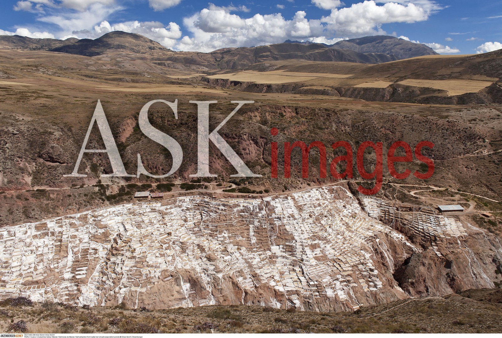 DescriptionPERU / Cusco / Urubamba Valley / Maras / Salineras de Maras / Salt extraction from salty river at salt evaporation ponds..© Oliver Bolch / Anzenberger