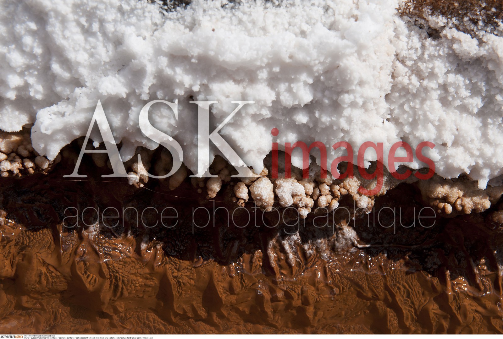 DescriptionPERU / Cusco / Urubamba Valley / Maras / Salineras de Maras / Salt extraction from salty river at salt evaporation ponds / Salty detail..© Oliver Bolch / Anzenberger