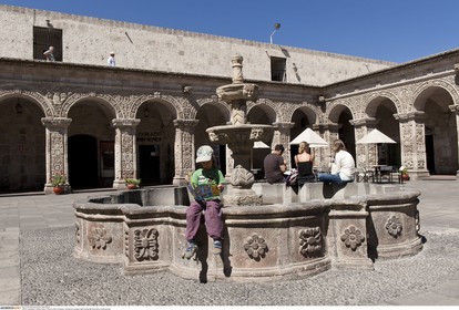 • PERU / Arequipa / Historic town / Church of the Company / Cloistered courtyard with fountain..© Oliver Bolch / Anzenberger