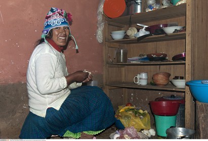 • PERU / Puno / Lake Titicaca / Amantani Island / Quechua woman in her kitchen..© Oliver Bolch / Anzenberger