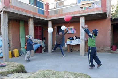 • PERU / Puno / Lake Titicaca / Floating islands of the Uros / Uro children in their hut..© Oliver Bolch / Anzenberger