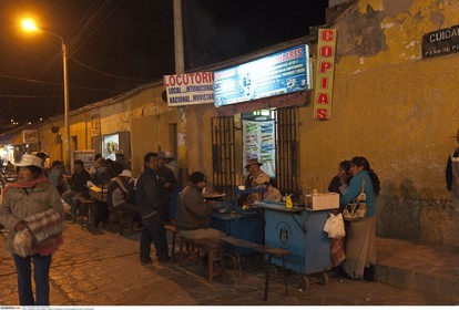 • PERU / Arequipa / Colca Canyon / Chivay / Foodstands in the evening ..© Oliver Bolch / Anzenberger