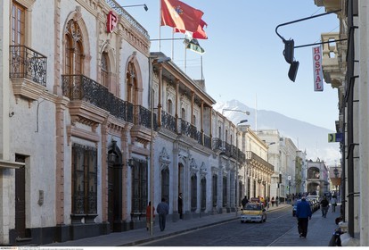 • PERU / Arequipa / Historic town / Calle La Merced with volcano Misti in background..© Oliver Bolch / Anzenberger