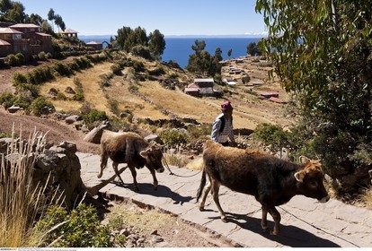 • PERU / Puno / Lake Titicaca / Taquile Island / Quechua man with cattle..© Oliver Bolch / Anzenberger