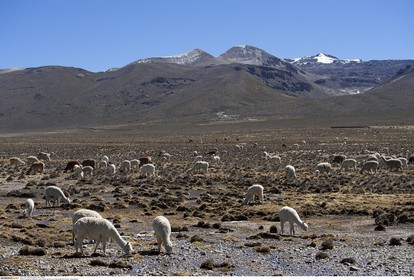 • PERU / Arequipa / Altiplano near Chivay with flock of Llamas..© Oliver Bolch / Anzenberger