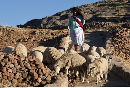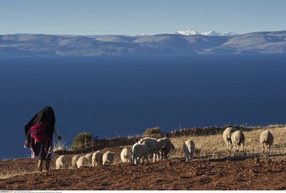 • PERU / Puno / Lake Titicaca / Amantani Island / Quechua woman with sheep..© Oliver Bolch / Anzenberger