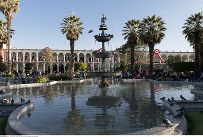 • PERU / Arequipa / Historic town / Plaza de Armas / Fountain..© Oliver Bolch / Anzenberger