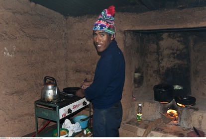• PERU / Puno / Lake Titicaca / Amantani Island / Quechua man cooking..© Oliver Bolch / Anzenberger