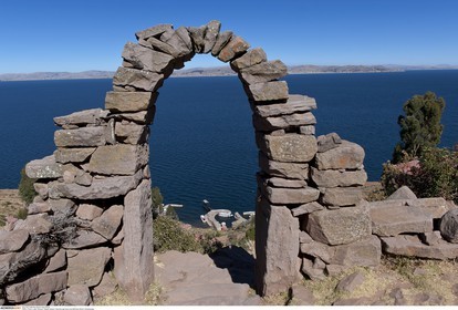 • PERU / Puno / Lake Titicaca / Amantani Island / View across island with stone arch..© Oliver Bolch / Anzenberger