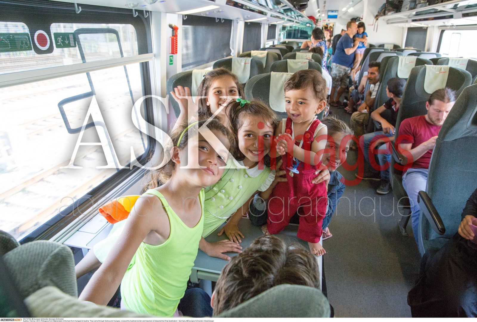 DescriptionAustria / Vienna / 2015 / Refugees in the train from Hungary to Austria. ..They came through Serbia and Hungary, crossed the Austrian border and travelled on towards their final destination - Germany...© Georges Schneider / Anzenberger