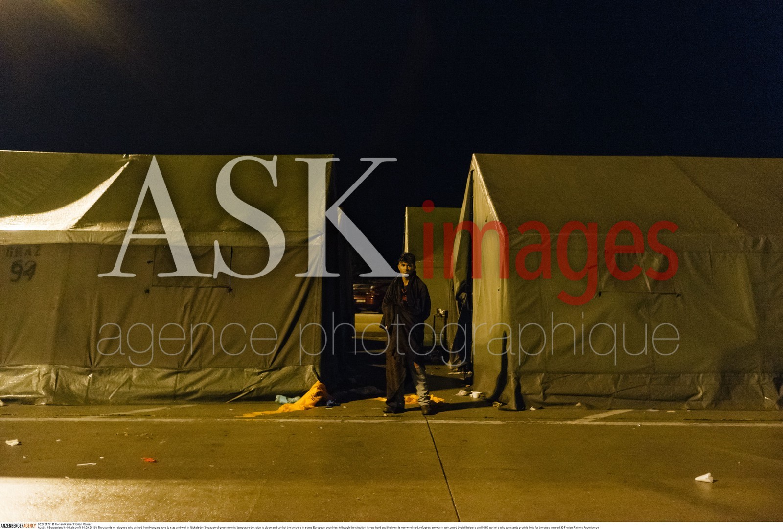 | Description | Austria / Burgenland / Nickelsdorf / 14.09.2015 / Thousands of refugees who arrived from Hungary have to stay and wait in Nickelsdorf because of governments' temporary decision to close and control the borders in some European countries. Although the situation is very hard and the town is overwhelmed, refugees are warm welcomed by civil helpers and NGO workers who constantly provide help for the ones in need...© Florian Rainer / Anzenberger |
