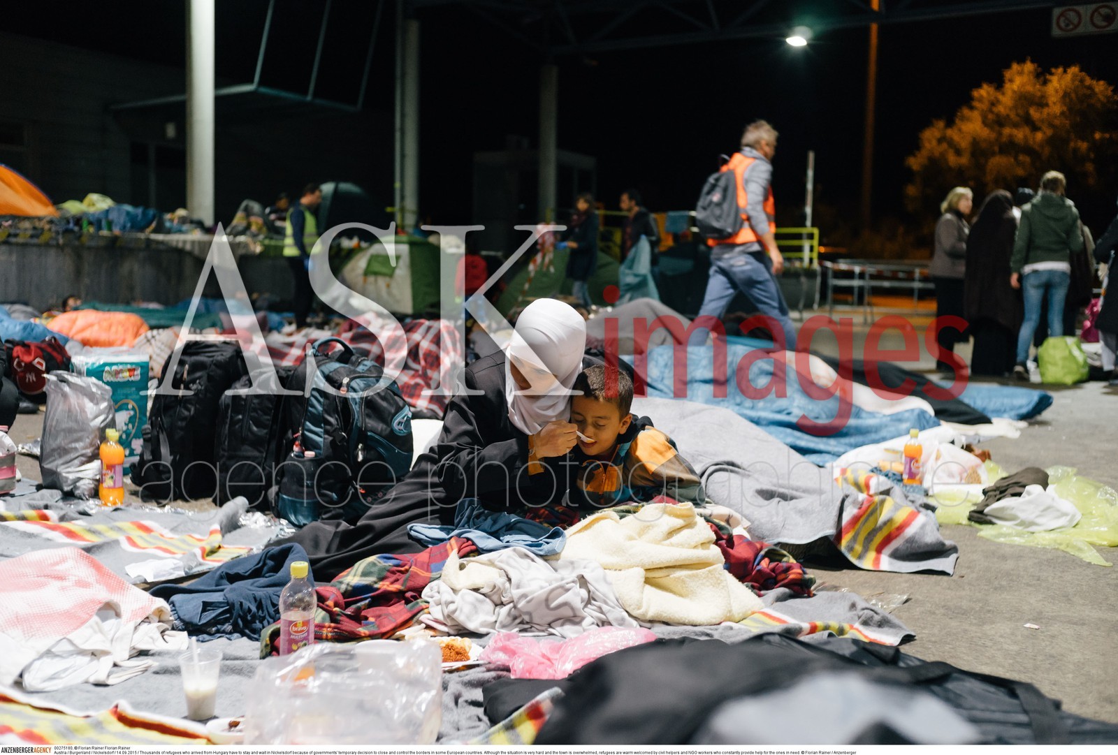 | Description | Austria / Burgenland / Nickelsdorf / 14.09.2015 / Thousands of refugees who arrived from Hungary have to stay and wait in Nickelsdorf because of governments' temporary decision to close and control the borders in some European countries. Although the situation is very hard and the town is overwhelmed, refugees are warm welcomed by civil helpers and NGO workers who constantly provide help for the ones in need...© Florian Rainer / Anzenberger |