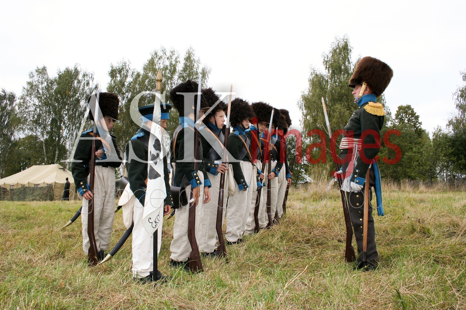 | Description | Russian soldiers, Reconstruction of The Battle of Borodino, Every year the anniversary of the 1812 battle is celebrated on Borodino Field Day, when the battle is actually reenacted. People playing the French and Russian soldiers dress in period uniforms, cannons roar and smoke rises from the battlefield. A religious ceremony is held after the battle to give thanks for Napoleon’s defeat. |