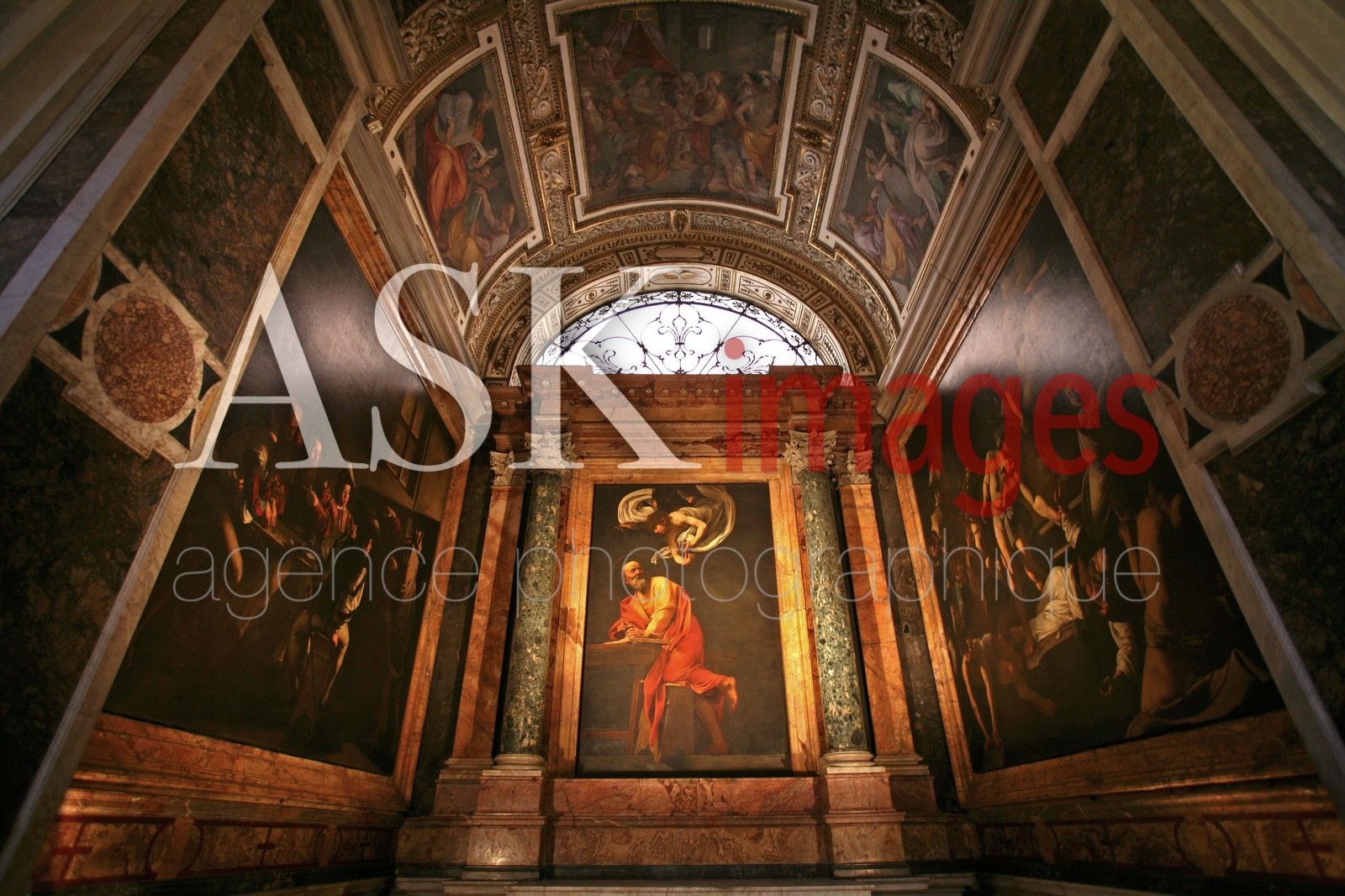 DescriptionRome, Paintings by Caravaggio at the Church of St Louis of the French, Triptych of St Matthew.