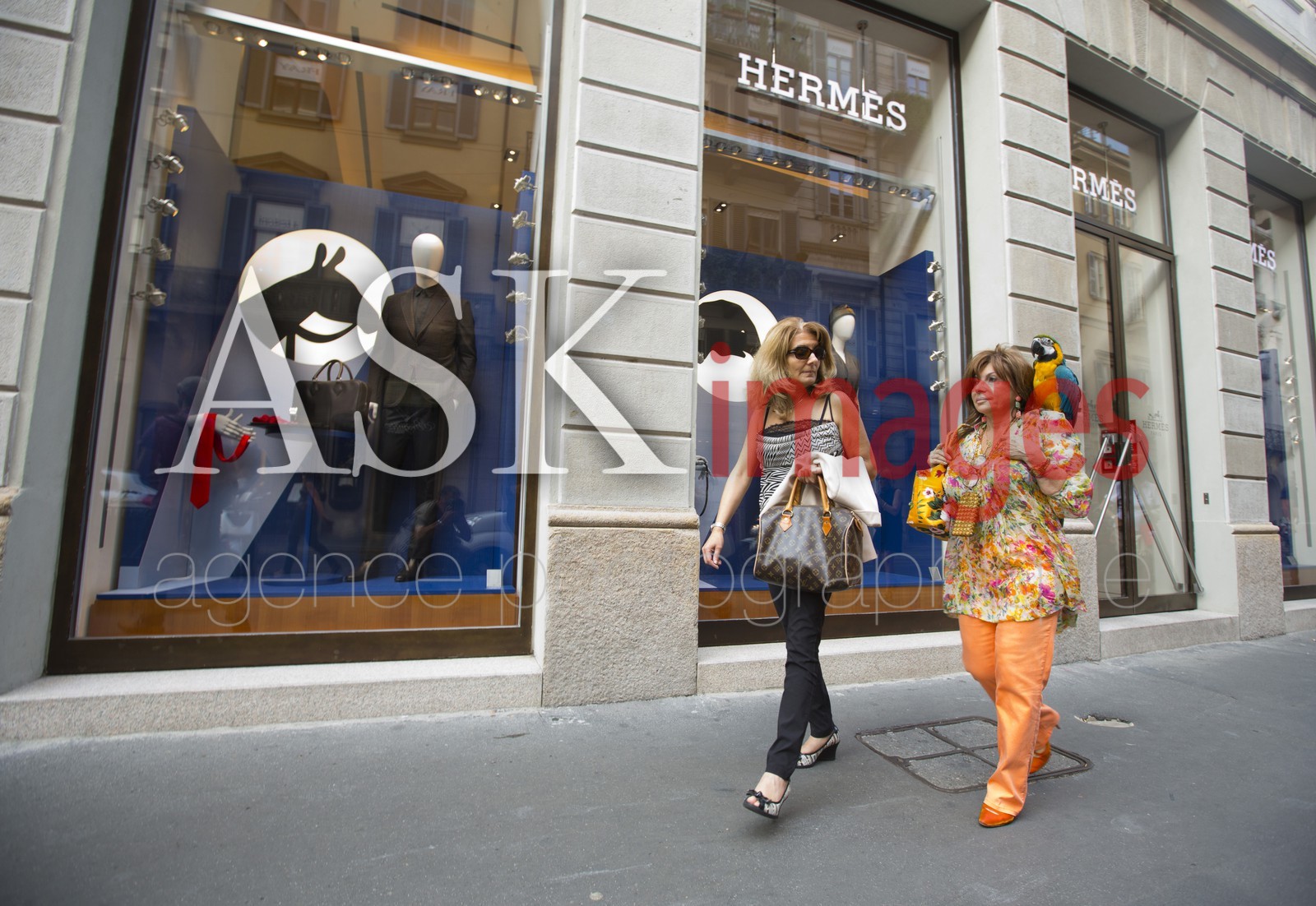 Woman with parrot, shopping, Milan, Italy