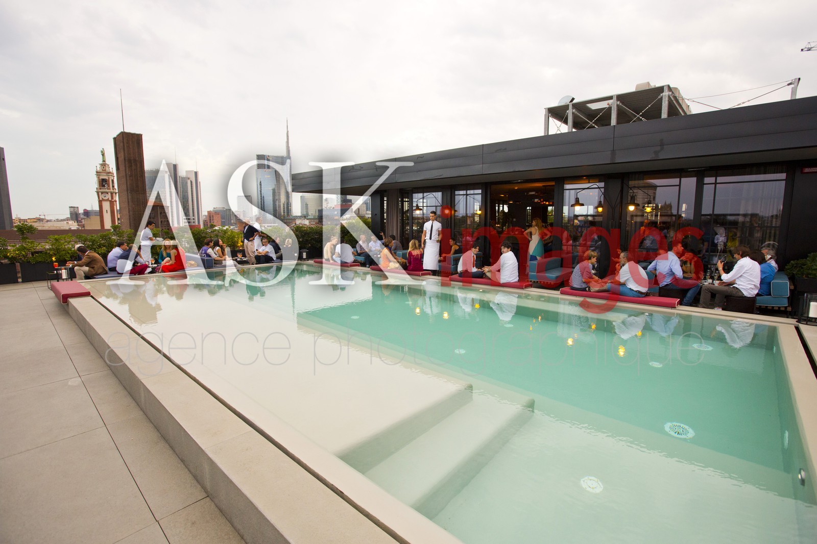 | Description | Modern bar with swimming pool, the Ceresio 7, Milan, Italy |