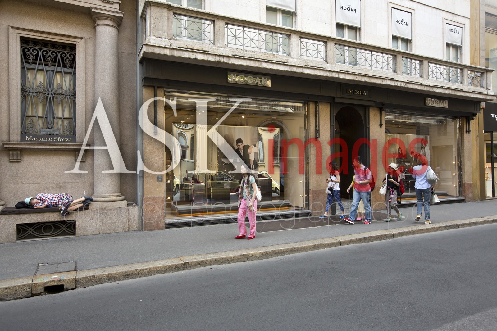 | Description | Via Montenapoleone in the mode district, chinese tourists and homeless, Milan, Italy |