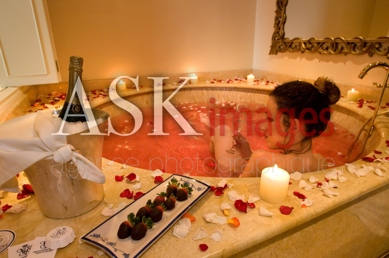 DescriptionInside one of the rooms at the Miraflores Park Hotel by Orient Express Belmond, Lima, Peru, It has a fabulous aphrodisiac bath in a circular roman tub with rose petals and some magic dust, which make you enjoy sensuality of the moment, together, champagne and strawberries dipped in chocolate