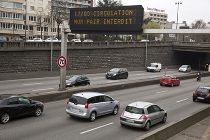 Paris, alternative traffic police control, odd plates of registry authorized only Paris, circulation alternee