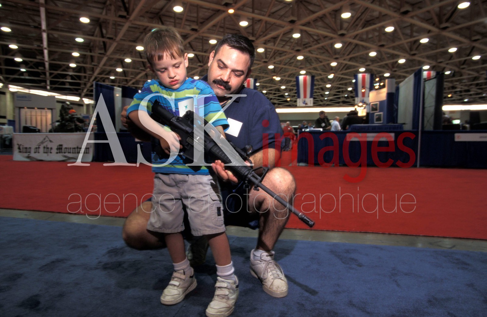 | Description | Dallas, Texas, USA; A boy checks out a gun during a N ational Rifle Association Convention in Dallas, Texas. ©Les Stone / The Image Works |