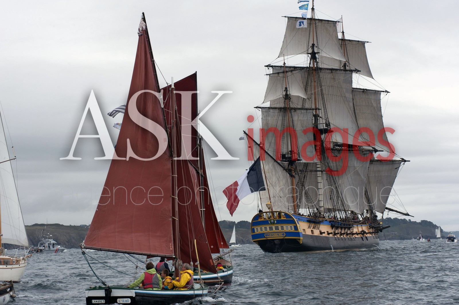 DescriptionThe three mats the Hermione, exact replica of the Lafayette 's boat in Goulet de Brest, Bretagne, France, August 2015