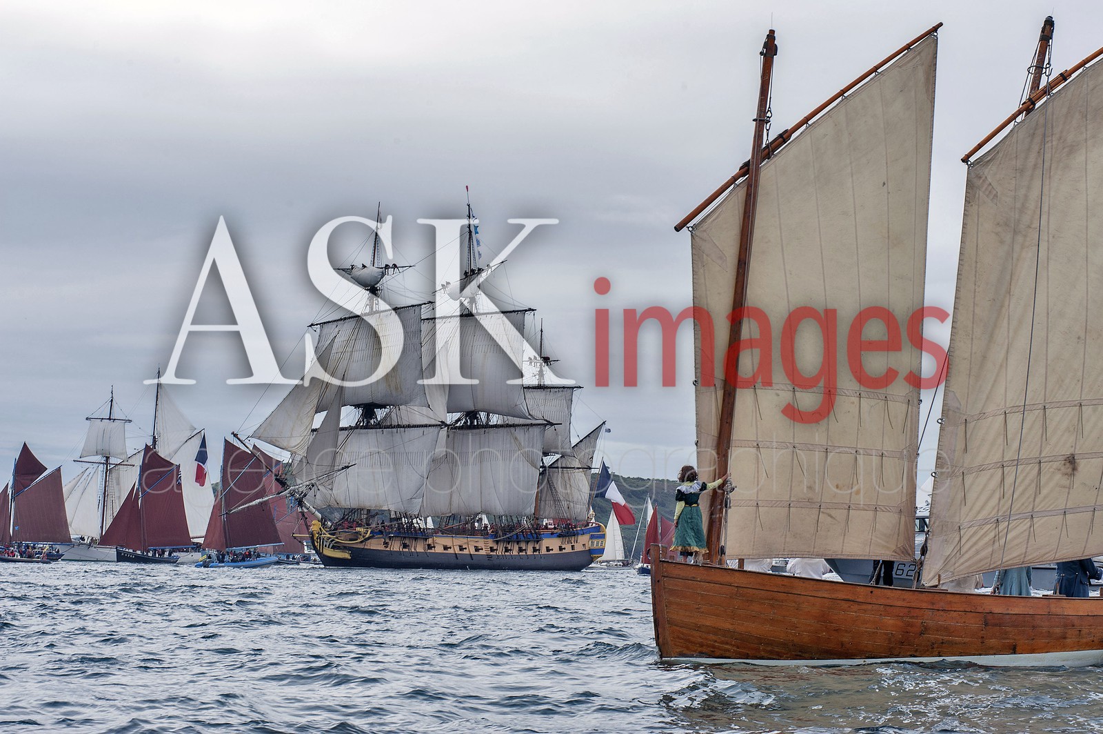 DescriptionThe three mats the Hermione, exact replica of the Lafayette 's boat in Goulet de Brest, Bretagne, France, August 2015