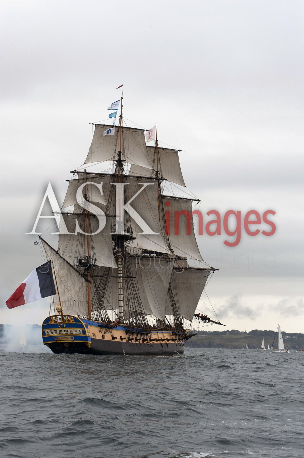 | Description | The three mats the Hermione, exact replica of the Lafayette 's boat in Goulet de Brest, Bretagne, France, August 2015 |