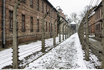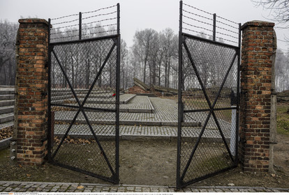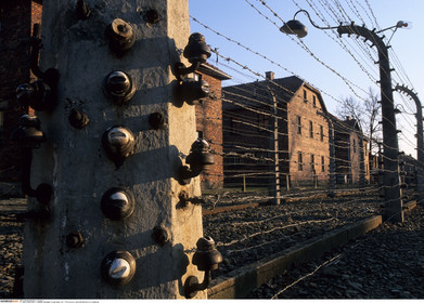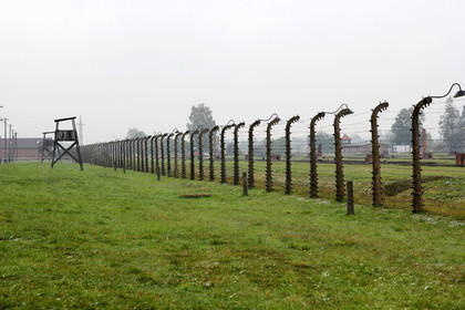 Europe, Pologne, Voivodie de petite pologne, Oswiecim, Auschwitz Birkenau, les barbeles qui entourent le camp, construit a partir de 1940 par heinrich himmler, plus de 1.1 millions d enfants, de femmes et d hommes meurent dont 900 000 directement a la sortie du train, aujourd hui monument historique et culturel qui contribue au devoir de memoire inscrit au patrimoine mondial de l unesco.