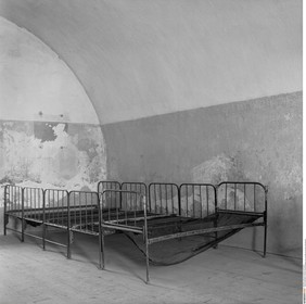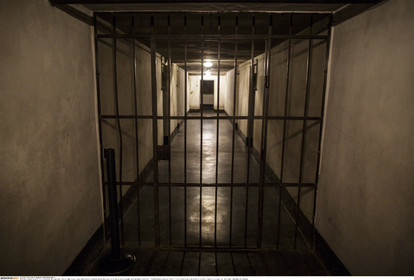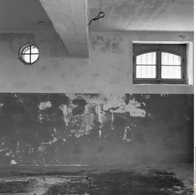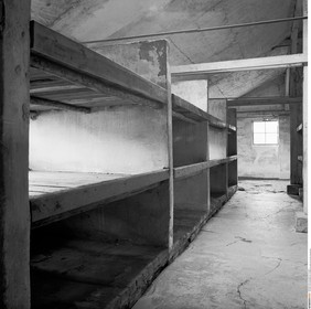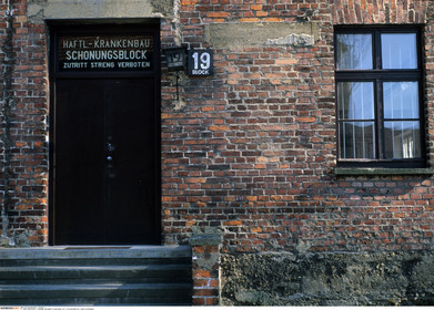 Europe, Pologne, Voivodie petite pologne, Oswiecim, Auschwitz Birkenau, les vestiges de l un des batiments sur l aile gauche du camp, ici depuis l interieur d un baraquement des habitations des hommes, construit a partir de 1940 par heinrich himmler, plus de 1.1 millions d enfants, de femmes et d hommes meurent dont 900 000 directement a la sortie du train, aujourd hui monument historique et culturel qui contribu au devoir de memoire inscrit au patrimoine mondial de l unesco