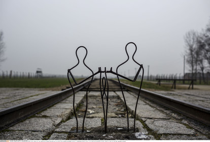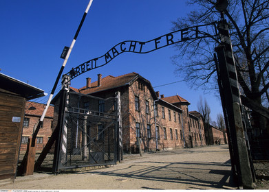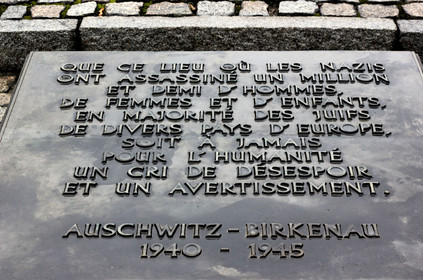 Europe, Pologne, Voivodie de petite pologne, Oswiecim, Auschwitz Birkenau, un monument international a la mÈmoire des victimes, situÈ entre les crÈmatoires II et III, le meme texte est inscrit sur 22 dalles fixÈes sur le sol d un monument, toutes traduites dans des langues differentes, le camp est construit a partir de 1940 par heinrich himmler , plus de 1.1 millions d enfants, de femmes et d hommes meurent dont 900 000 directement a la sortie du train, aujourd hui monument historique et culturel qui contribu au devoir de memoire inscrit au patrimoine mondial de l unesco.